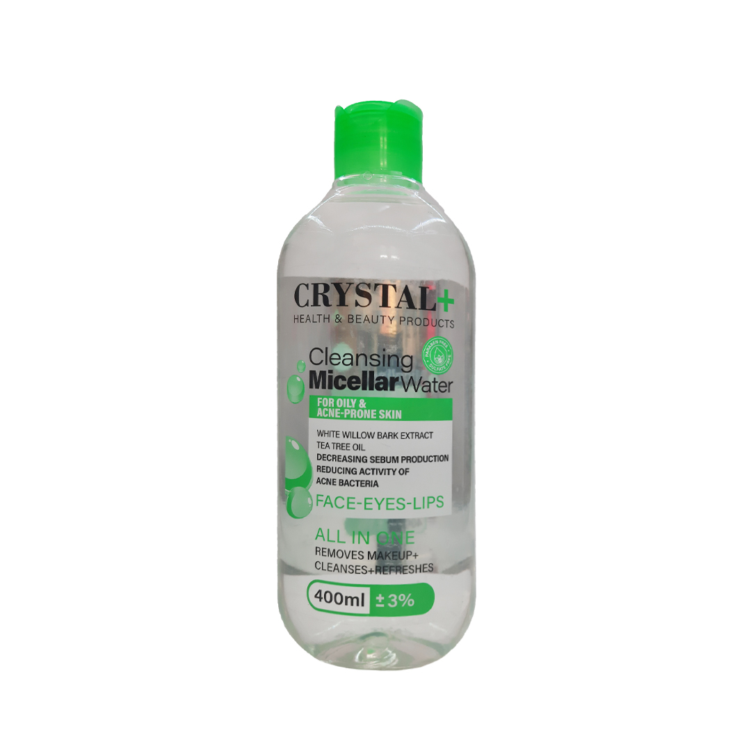 محلول پاک کننده آرایش (میسلار واتر) کریستال پلاس حجم 400 میلی لیتر مناسب پوست چرب و مستعد جوش